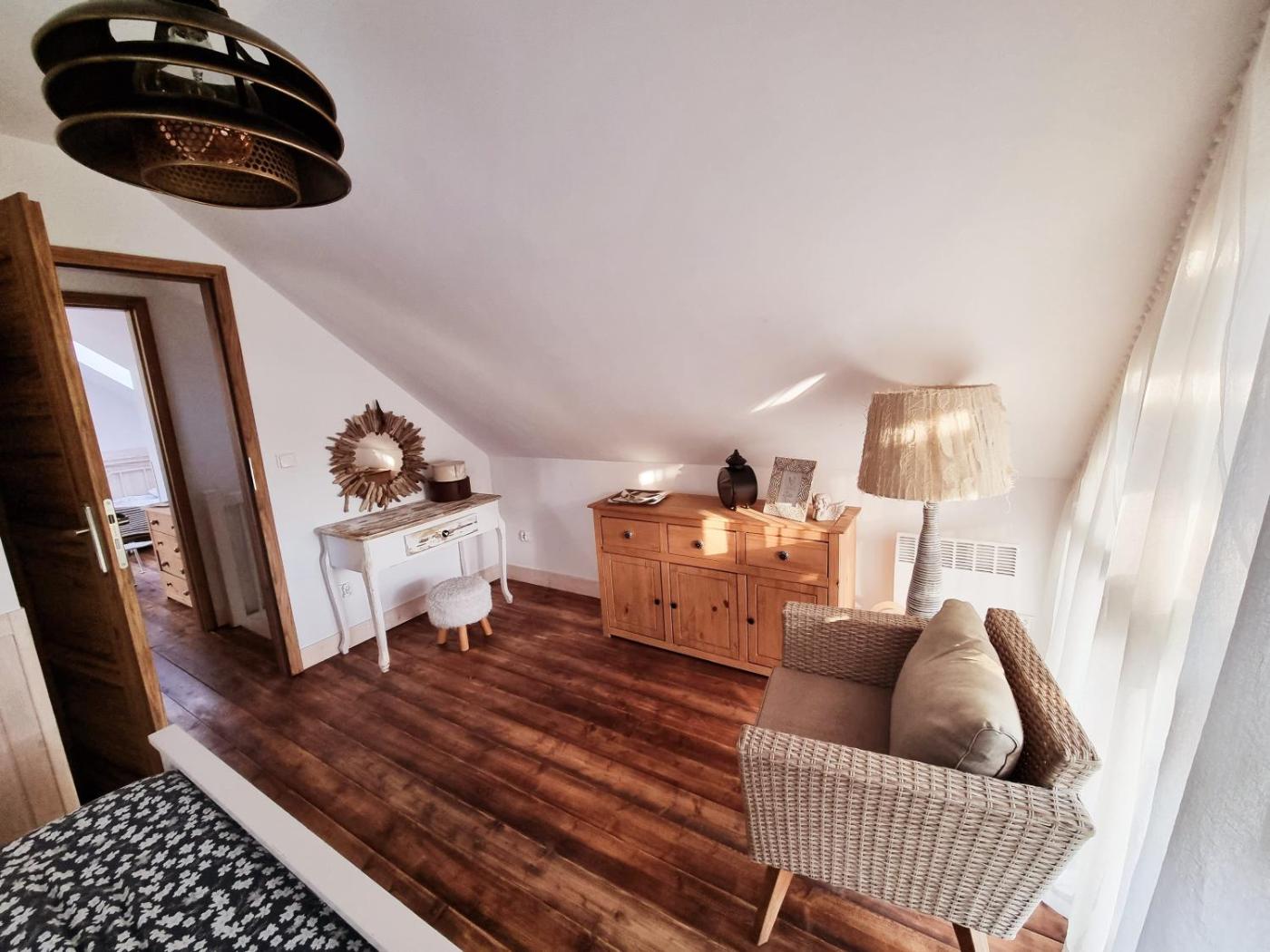 Dom z 2 sypialniami. This holiday homes special feature is the fireplace. Featuring a private entrance, this holiday home consists of 1 living room, 2 separate bedrooms and 2 bathrooms with a walk-in shower and a hairdryer. The fully equipped kitchen features a stovetop, a refrigerator, a dishwasher and kitchenware. Boasting a terrace with garden views, this holiday home also provides a washing machine and a flat-screen TV with streaming services. The unit offers 4 beds. Dom wakacyjny - 5 osobowy. Powierzchnia pokoju ok.: 76 mkw.