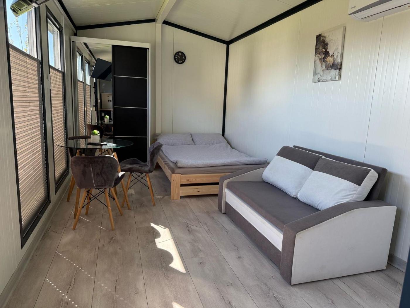 Dom z 1 sypialnią. The air-conditioned holiday home has 1 bedroom and 1 bathroom with a shower and a hairdryer. The holiday homes kitchen, which features a refrigerator, is available for cooking and storing food. The holiday home features a flat-screen TV, a dining area, a wardrobe, an electric kettle as well as garden views. The unit has 2 beds. Dom wakacyjny - 4 osobowy. Powierzchnia pokoju ok.: 21 mkw.