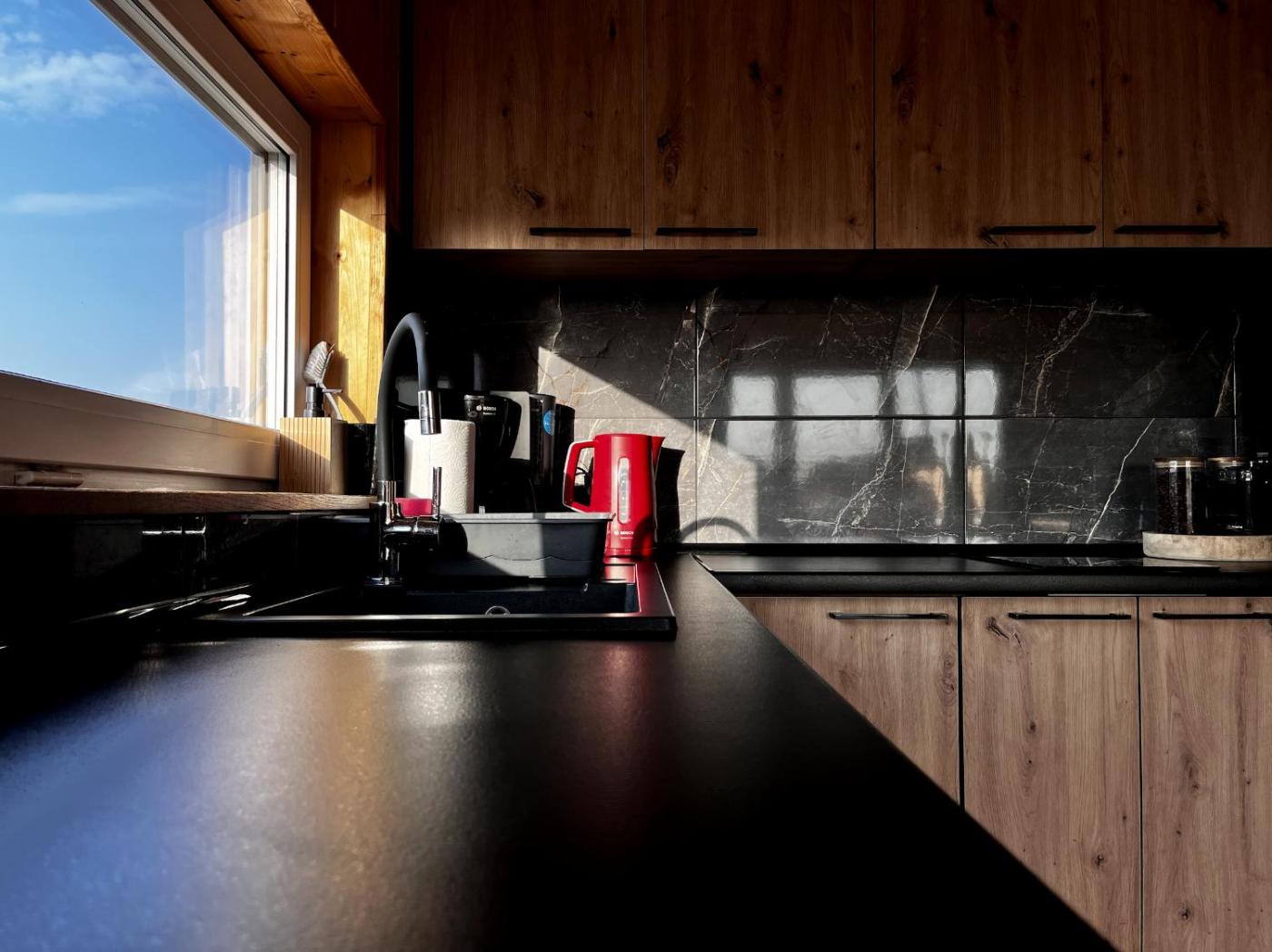 Oferta domu wakacyjnego obejmuje sypialnię (1), salon, kuchnię z pełnym wyposażeniem, w tym lodówką i ekspresem do kawy, a także łazienkę (1) z prysznicem oraz wanną z hydromasażem. W domu wakacyjnym zapewniono ręczniki i pościel.