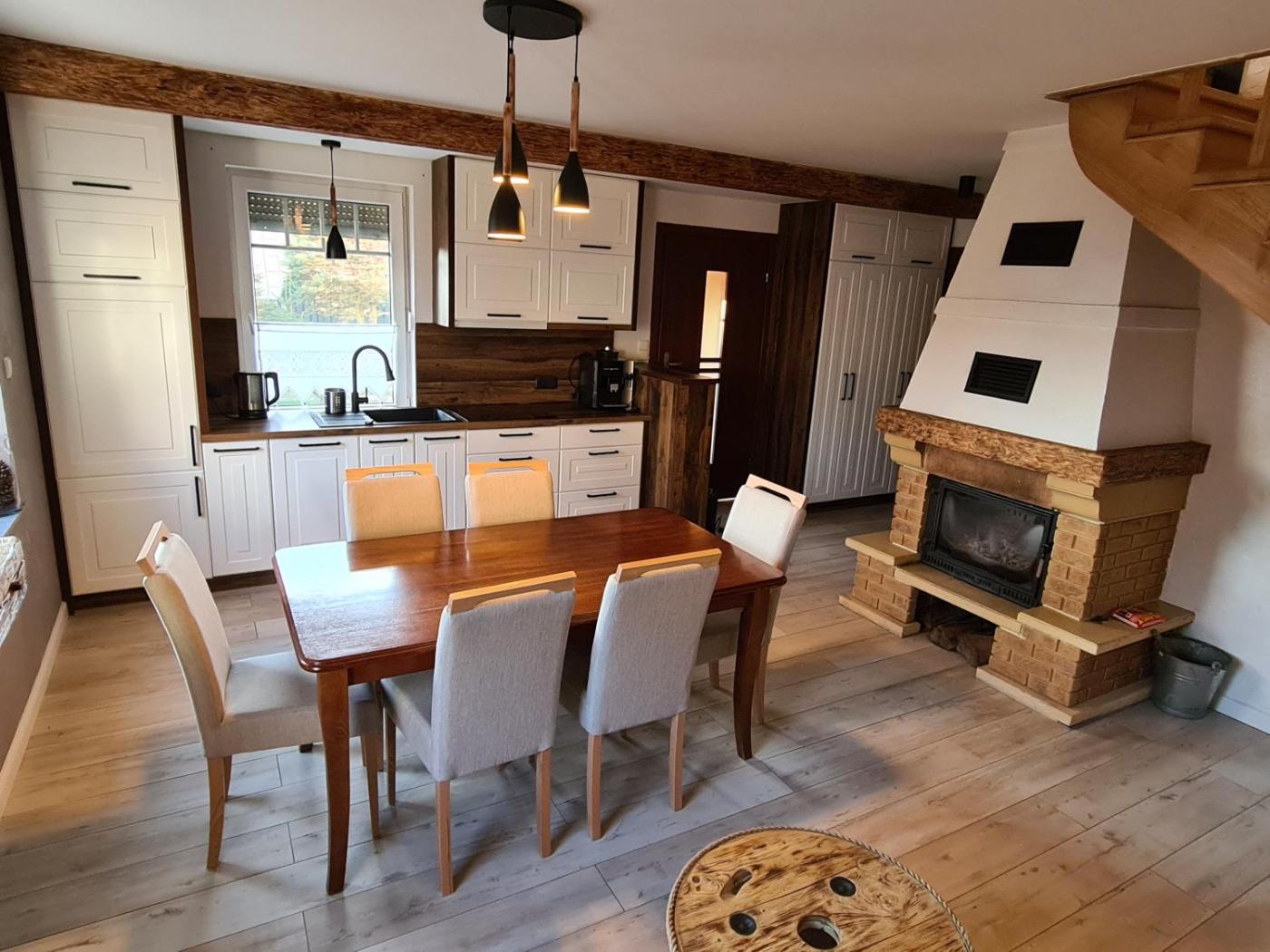 Dom z 3 sypialniami. Jest to dom wakacyjny z kominkiem. Ten przestronny dom wakacyjny z oddzielnym wejściem mieści salon, 3 oddzielne sypialnie oraz 2 łazienki z kabiną prysznicową. W dobrze wyposażonej kuchni przygotowano płytę kuchenną, lodówkę, zmywarkę do naczyń oraz przybory kuchenne. Goście zakwaterowani w tym domu wakacyjnym mogą korzystać ze sprzętu do grillowania. Pozostałe udogodnienia obejmują pralkę, telewizor z płaskim ekranem i taras z widokiem na jezioro. W opcji zakwaterowania zapewniono 6 łóżek. Dom wakacyjny - 8 osobowy. Powierzchnia pokoju ok.: 120 mkw.