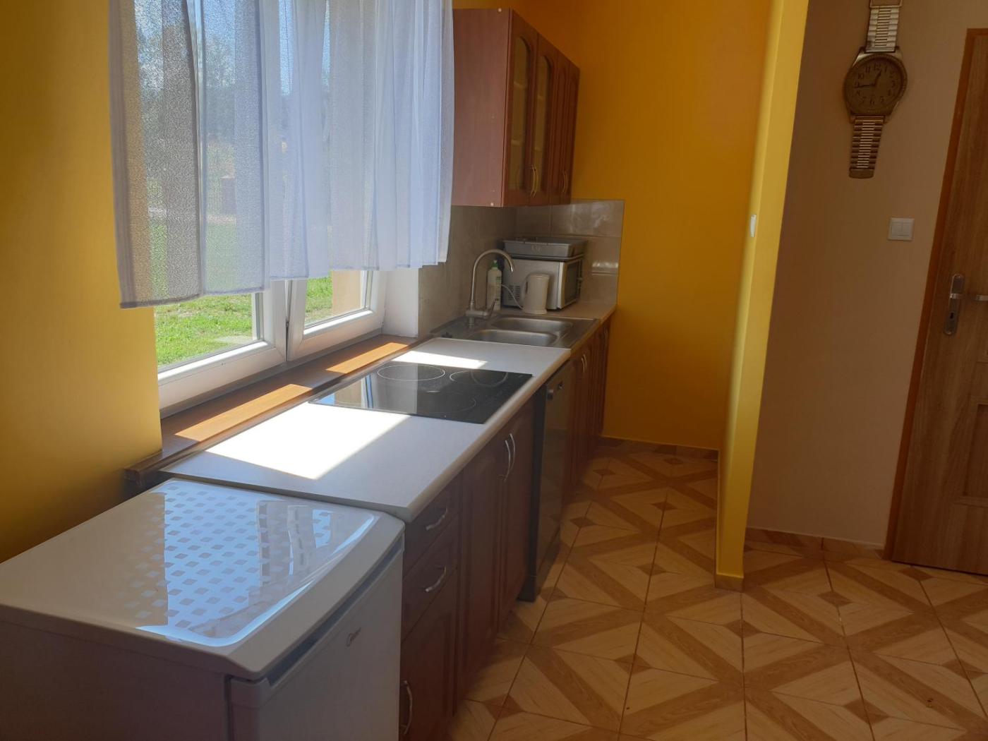 Domek. This chalets standout features are the private pool and sauna. This chalet consists of 1 living room, 1 separate bedroom and 1 bathroom with a walk-in shower and a hairdryer. Guests will find a stovetop, a refrigerator, a dishwasher and kitchenware in the kitchen. The chalet also offers a barbecue. The chalet provides a wardrobe, an electric kettle, a tiled floor, a flat-screen TV, as well as garden views. The unit offers 3 beds. Domek - 4 osobowy. Powierzchnia pokoju ok.: 36 mkw.