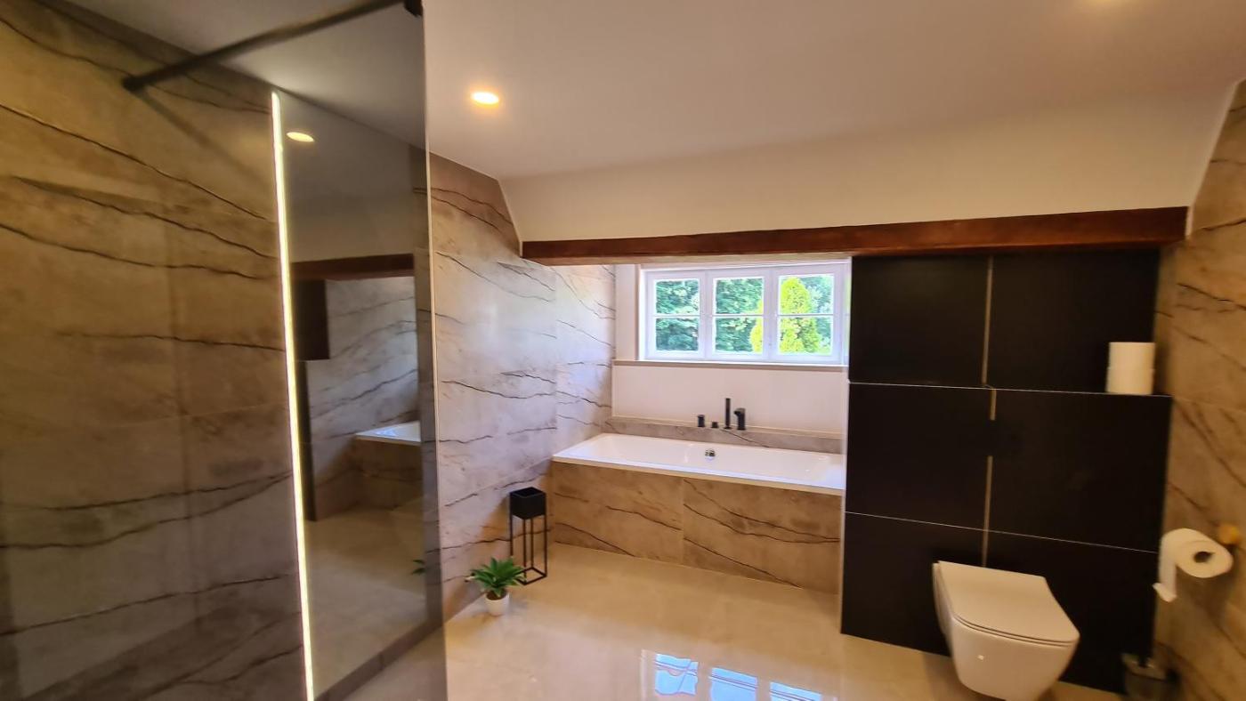 Dom z 2 sypialniami. Boasting a private entrance, this holiday home includes 1 living room, 2 separate bedrooms and 2 bathrooms with a shower. Guests will find a stovetop, a refrigerator, a dishwasher and kitchenware in the well-equipped kitchen. The holiday home also features a barbecue. The holiday home offers a flat-screen TV with streaming services, a coffee machine, a seating area, a dining area as well as lake views. The unit has 3 beds. Dom wakacyjny - 6 osobowy. Powierzchnia pokoju ok.: 65 mkw.