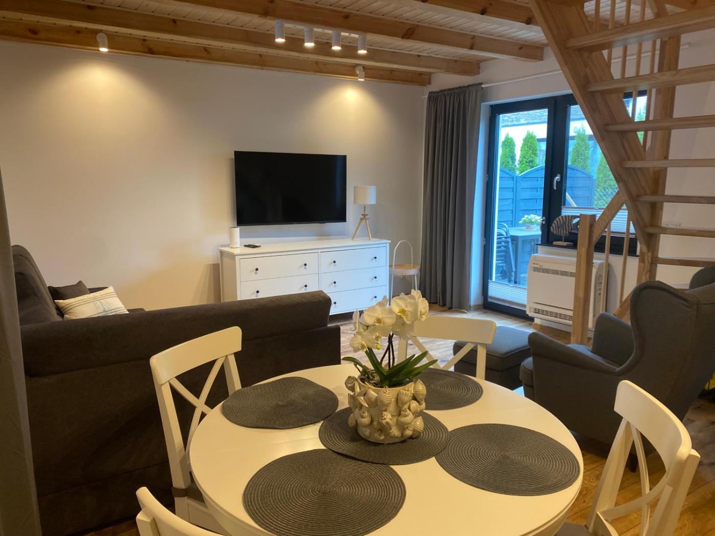 Dom z 2 sypialniami. Featuring a private entrance, this holiday home comprises 1 living room, 2 separate bedrooms and 1 bathroom with a bath or a shower and a hairdryer. Guests will find a stovetop, a refrigerator, a dishwasher and kitchenware in the kitchen. The holiday home also provides guests with a barbecue. Boasting a terrace, this holiday home also provides a washing machine, a tea and coffee maker and a flat-screen TV with satellite channels. The unit offers 5 beds. Dom wakacyjny - 7 osobowy. Powierzchnia pokoju ok.: 70 mkw. ;