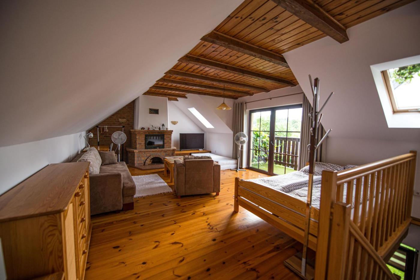 Dom z 2 sypialniami. The fireplace is the standout feature of this holiday home. Guests will find a stovetop, a refrigerator, a dishwasher and kitchenware in the well-fitted kitchenette. The holiday home also comes with a barbecue. Boasting a terrace with garden views, this holiday home also features a private entrance and a flat-screen TV. The unit has 3 beds. Dom wakacyjny - 6 osobowy. Powierzchnia pokoju ok.: 75 mkw.