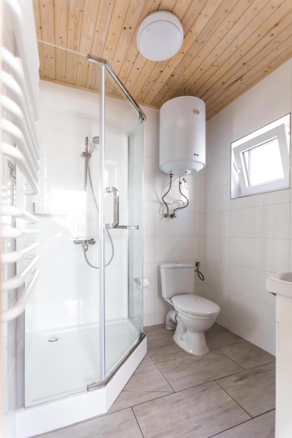 Domek z 2 sypialniami. Ten domek z oddzielnym wejściem mieści salon, 2 oddzielne sypialnie oraz łazienkę z kabiną prysznicową. W aneksie kuchennym znajduje się płyta kuchenna, lodówka, przybory kuchenne i kuchenka mikrofalowa. Domek dysponuje też sprzętem do grillowania. Domek dysponuje ponadto tarasem z widokiem na ogród, zestawem do parzenia kawy i herbaty oraz telewizorem z płaskim ekranem i dostępem do kanałów kablowych. Ta opcja zakwaterowania wyposażona jest w 5 łóżek. Domek - 8 osobowy. Powierzchnia pokoju ok.: 54 mkw. ;