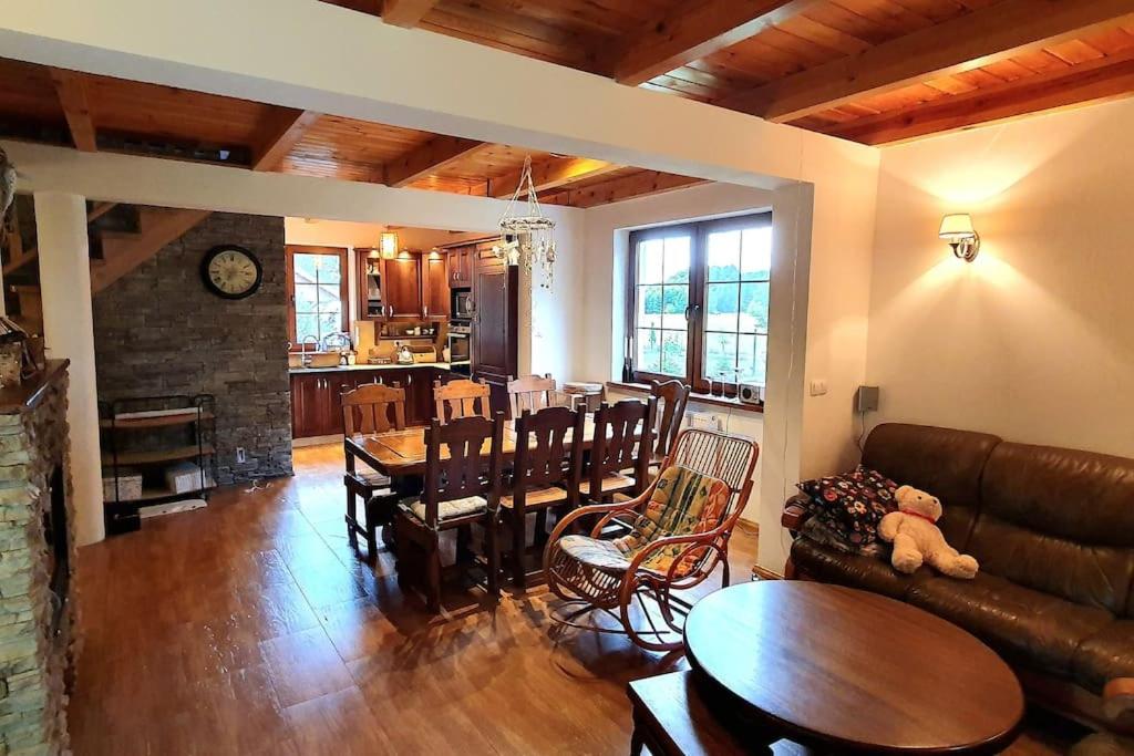 Dom z 4 sypialniami. Guests will have a special experience as this holiday home provides a fireplace. Guests will find a stovetop, a refrigerator, a dishwasher and an oven in the fully equipped kitchen. The holiday home also has a barbecue. The spacious holiday home offers a washing machine, a tea and coffee maker, a dining area, tumble dryer and a flat-screen TV with streaming services. The unit offers 8 beds. Dom wakacyjny - 10 osobowy. Powierzchnia pokoju ok.: 140 mkw.