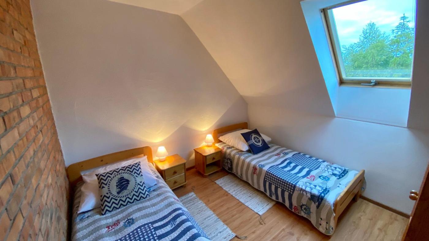 Dom z 3 sypialniami. Guests will have a special experience as this holiday home offers a fireplace. This holiday home is comprised of 1 living room, 3 separate bedrooms and 1 bathroom with a shower. Guests will find a stovetop, a refrigerator, a dishwasher and kitchenware in the well-equipped kitchen. The holiday home also has a barbecue. This holiday home features a coffee machine, a dining area, a flat-screen TV with satellite channels and a terrace. The unit offers 7 beds. Dom wakacyjny - 6 osobowy. Powierzchnia pokoju ok.: 90 mkw.