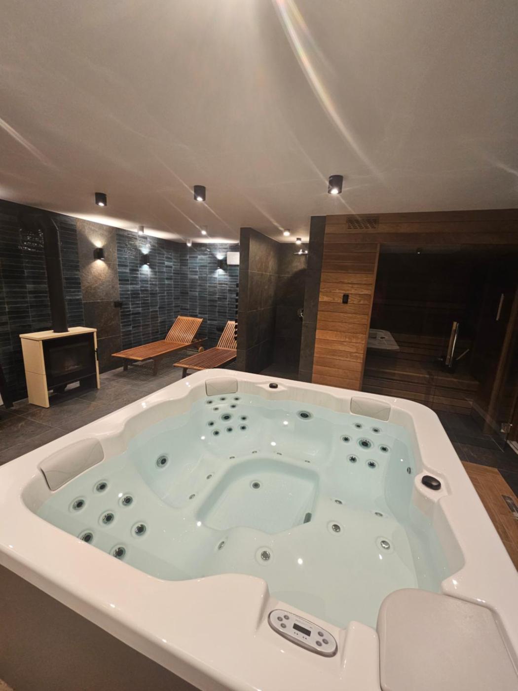 Zaplecze odnowy biologicznej obiektu GORCOWIECZKA Dom nad Doliną obejmuje saunę i wannę z hydromasażem.